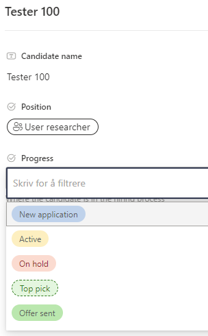 I min “Recruitment tracker” liste har jeg en kolonne som heter “Progress“, jeg ønsker at arbeidsflyten skal starte kun hvis “Progress = Offer sent“