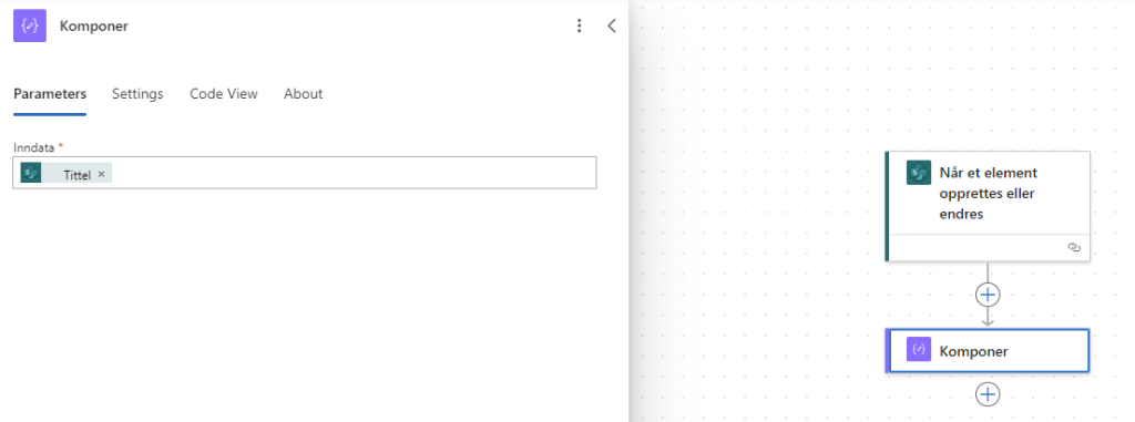 - Handling, komponer som logger “Tittelen” til elementet som startet arbeidsflyten